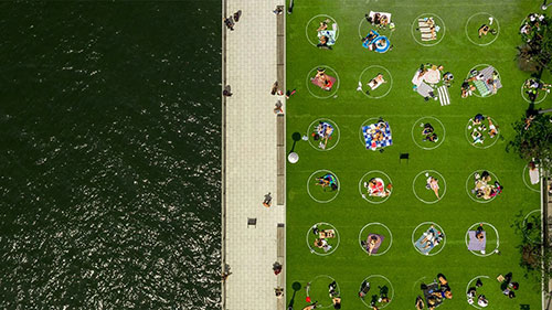 紐約為了讓市民們出行保持適當(dāng)?shù)纳缃痪嚯x可謂是操碎了心。多米諾公園的草地上竟然出現(xiàn)了人類停車位,大約有30個(gè)對稱排列的圓圈,每個(gè)圓圈的直徑為2.4米,出行的人待在指定的圈內(nèi),就可以達(dá)到保持社交距離的目的。
