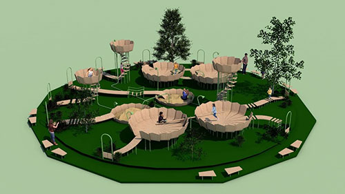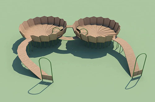 柏林的設(shè)計(jì)師 Martin BinderClaudio Rimmele設(shè)計(jì)了一個(gè)無感染的概念運(yùn)動(dòng)場,孩子們可以在病毒肆虐期間不受影響地玩耍。