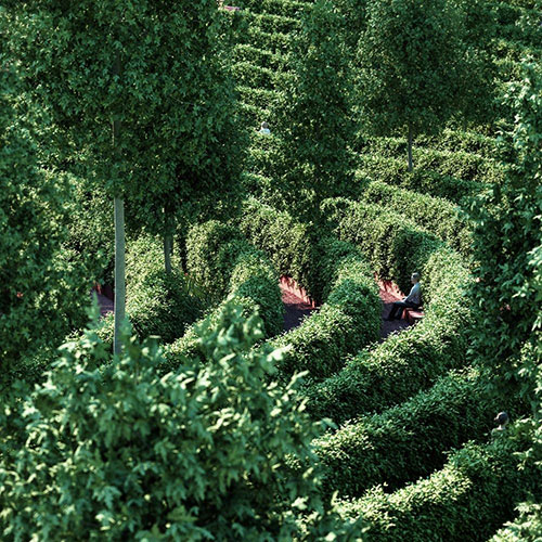 平行的小路如同指紋一般,引導(dǎo)著游客們在起起伏伏的景觀中穿行。每條小路都有獨(dú)立的入口和出口,各條小路之間間隔240厘米,分隔小路的樹籬高90厘米。盡管人們在視覺上是彼此隔離的,但仍舊能聽到附近小路上傳來的陣陣腳步聲。