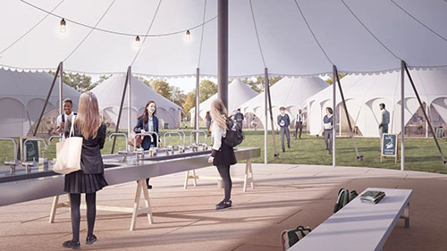 隨著英國政府重新開放小學(xué),英國工作室Curl la Tourelle Head為帳篷教室設(shè)計(jì)了一個(gè)概念,可以讓學(xué)生在返回學(xué)校時(shí)保持的安全社交距離。這既要幫助釋放現(xiàn)在的學(xué)校內(nèi)部空間,減輕社交空間中學(xué)生們的壓力,但是也要加強(qiáng)空氣流通。