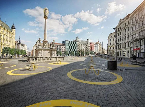 目前,捷克布爾諾的街道上,每個(gè)安全區(qū)都配備了一個(gè)就餐區(qū)。每個(gè)餐桌包含3個(gè)座位,而且是不可移動(dòng)的一體式結(jié)構(gòu),既安全又美觀,并且由可以經(jīng)常消毒和清潔的材料制成,亮麗的黃色也為街道增添了一些生機(jī)呢~