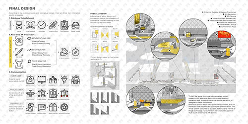 比較滿意的是張老師帶我做的一個(gè)服務(wù)設(shè)計(jì)——針對(duì)一個(gè)商業(yè)街區(qū)的激活與改造。這個(gè)項(xiàng)目從我本科一個(gè)課程設(shè)計(jì)開始,首先經(jīng)過建筑學(xué)的改造,提升地塊和建筑的易用性與吸引能力。然后結(jié)合一些技術(shù)手段,打造一個(gè)能實(shí)現(xiàn)更多交互機(jī)會(huì)的完整體系,并結(jié)合社交和游戲化等元素加強(qiáng)用戶的粘性。我認(rèn)為這個(gè)項(xiàng)目雖然現(xiàn)在看來還比較稚嫩,但是思路似乎是可以落地的,國內(nèi)外現(xiàn)有的一些商業(yè)平臺(tái)也在做類似的服務(wù)項(xiàng)目。