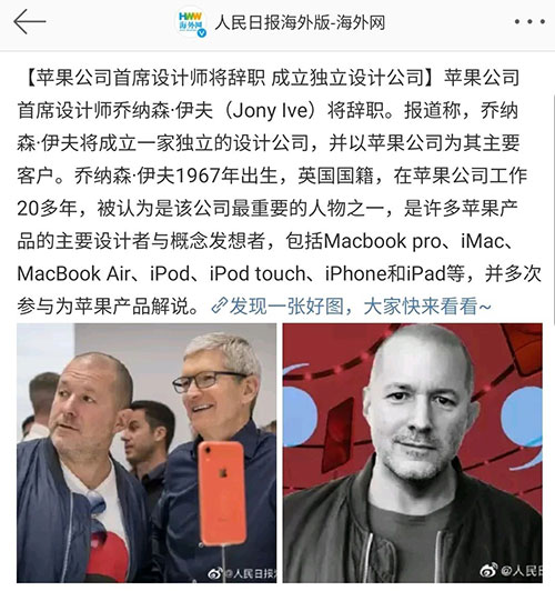 對于很多中國朋友來說,也許是從這件新聞才知道喬納森·伊夫這號人物。喬納森于1992年加入蘋果,最終成為首席設(shè)計師,陪伴蘋果經(jīng)歷了Mac Book、iPod、iPhone、iPad等多個歷史性產(chǎn)品時期。喬納森的離職,也直接導(dǎo)致了蘋果股價的下跌。
