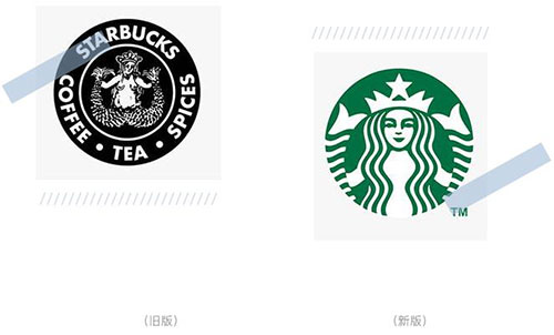 星爸爸第一版商標是由一幅16世紀斯堪地那維亞的雙尾美人魚木雕圖案, 她有赤裸乳房和一條充分地可看見的雙重魚尾巴。后來星巴克被霍華·蕭茲先生所創(chuàng)立的每日咖啡合并,所以換了新的商標。第二版的商標,沿用了原本的美人魚圖案,但她沒有赤裸乳房,并把商標顏色改成代表每日咖啡的綠色,就這樣融合了原始星巴克與每日咖啡的特色的商標就誕生了。