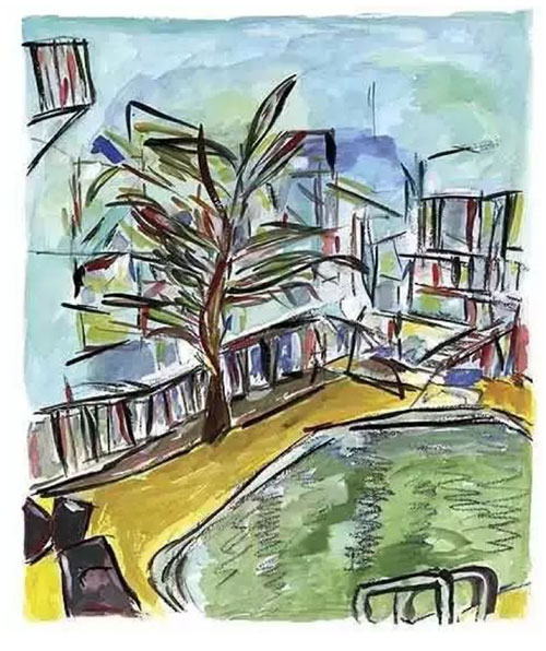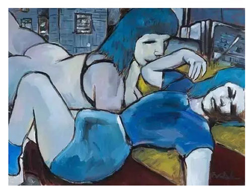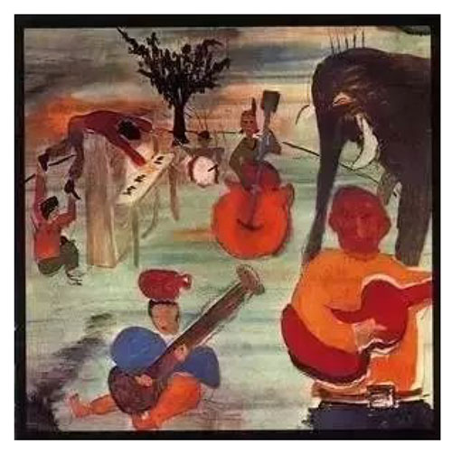 樂此不疲的迪倫還把畫放到了TheBand樂隊(duì)1989年的專輯《MusicFrom Big Pink》的封面上。這是一張充滿天真童趣的作品,畫面上彈鋼琴的男人被下面的人用手托住,從鋼琴的后面敲擊鍵盤,宛如漂浮一般??傮w上來說,色彩很好看,造型很稚拙,構(gòu)圖很好玩,很像兒童畫,頗有夏加爾的影子。