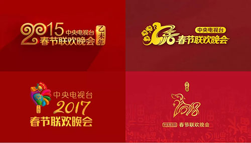 歷年來的春晚LOGO,亦是如此:數(shù)字的字體變形設(shè)計(jì)+當(dāng)年生肖元素設(shè)計(jì)+紅金風(fēng)格。