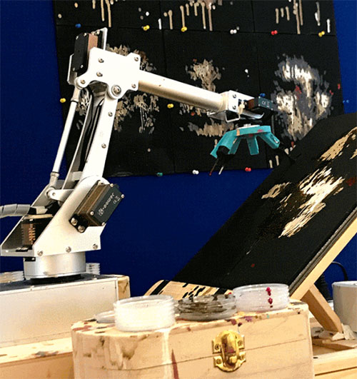 還記得當初那個靠深度學習打敗國際象棋世界冠軍的阿爾法狗嗎。在美國,Pindar Van Arman同樣用深度學習教會了他的AI機器人Cloudpainter如何用紙筆和顏料畫畫。
