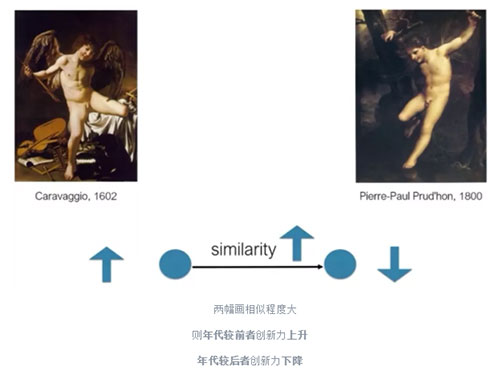通過這兩個數據的分析評定和整合,就可以得到藝術史上所有畫作的創(chuàng)新度。比如達芬奇最出名的蒙娜麗莎,通過大數據運算得出的創(chuàng)新度得出,它的創(chuàng)新力其實低于許多并不出名的作品。